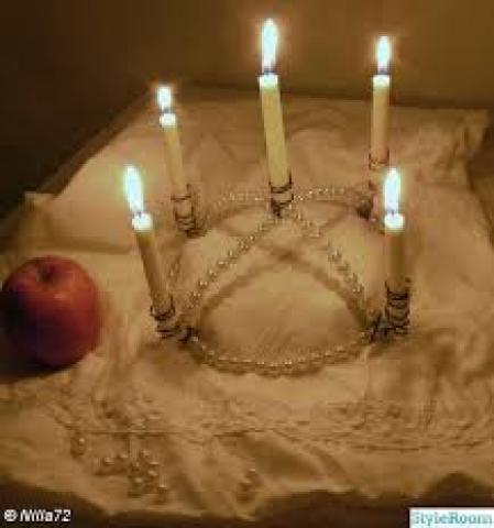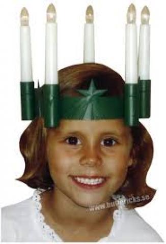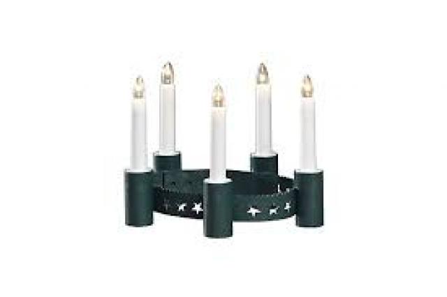 Penketas žvakelių, kurių kiekvienos ilgis 17 cm, tvirtinamos prie žalios plastmasinės juostos, sujungiamos vainiku. Į kiekvieną žvakelę turi būti įstatoma viena AA talpos baterija. Tokia karūna gali būti naudojama švenčiant, pvz. vaikų gimtadienius, vardadienius, ar kitas šventes. Tai geras geros nuotaikos užtaisas. Toks vainikas, dar išmoningai papuoštas gali būti kaip staigmena uždėta ant šventinio pyrago ar aplink šampano butelį. Kaina 4 eurai už girliandą su žvakutėmis.