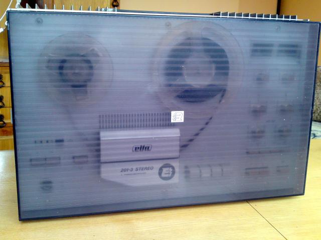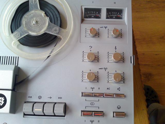 Juostinis Tarybiniu laiku gamybos magnetofonas. Yra galimybe prijungti 2 koloneles ir klausytis muzikos dar garsiau. Veikiantis. Zymiu apgadinimu neturi. Yra pajungimo laidas ir plastikinis gaubtas.