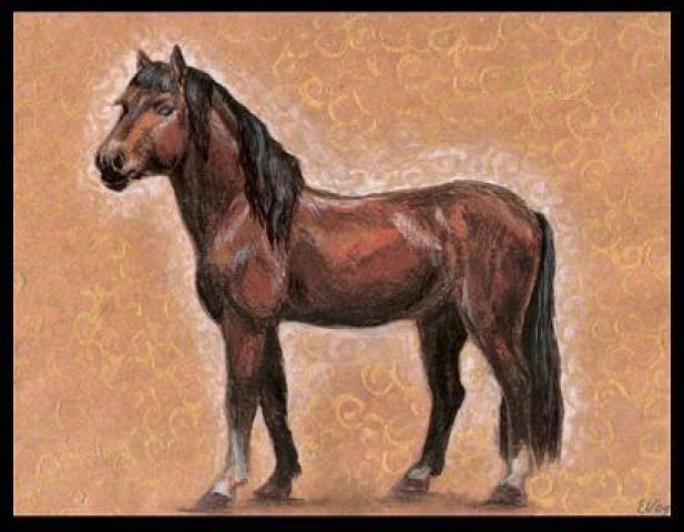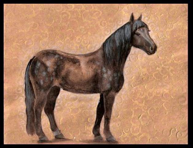 Žemaitukų žirgų portretai. ~A5, dažai, bronza ant popieriaus