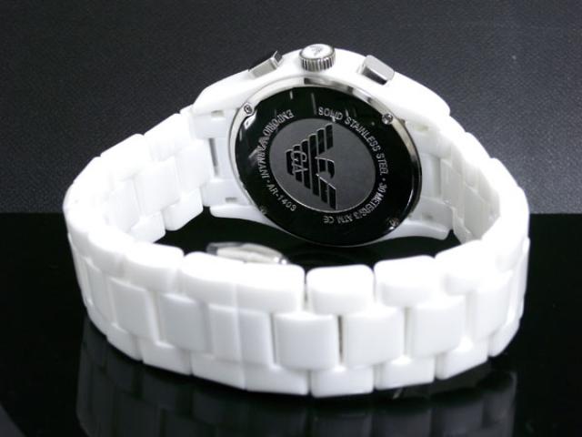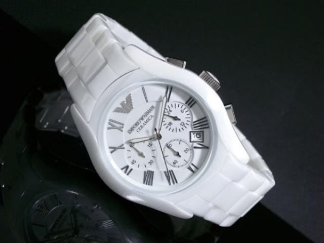 Emporio Armani ceramica Ar1403 laikrodzio korpusas bei pats dirzelis pagamintas is 100% keramikos baltas variantas vyriskas Model no: AR1400 Movement: High Quality Battery Powered Quartz Movement Display: Analogue Functions: Second, Minute, Hour, Date, Chronograph Dial: Black Dial with Giorgio Armani Logo Band: Black Ceramic Bracelet Metal: High Quality Ceramic Glass: Mineral Glass Clasp: Push Button Clasp Water Resistant: Water Resistant up to 50 Metre