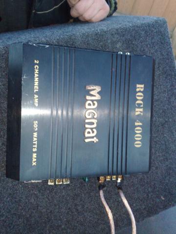 Parduodu Magnat subą 500w. Dėžė slėginė, pagaminta pilnai pagal sub'o reikalavimus (gylis ir t.t..) Stiprintuvas taip pat magnat 500w. Dviejų kanalų. Keturi ekvalaizeriai, (boso stiprimo, aukštų, output padavimo...)