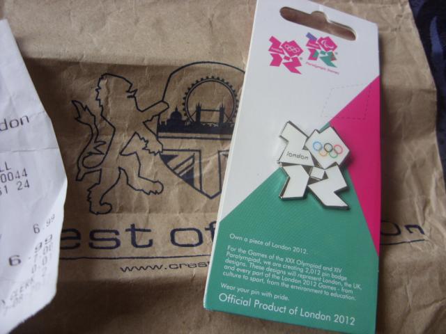Ženklelis skirtas olimpinėms žaidynėms Londone. Naujas, įpakuotas. Kainavo 7 svarus.
