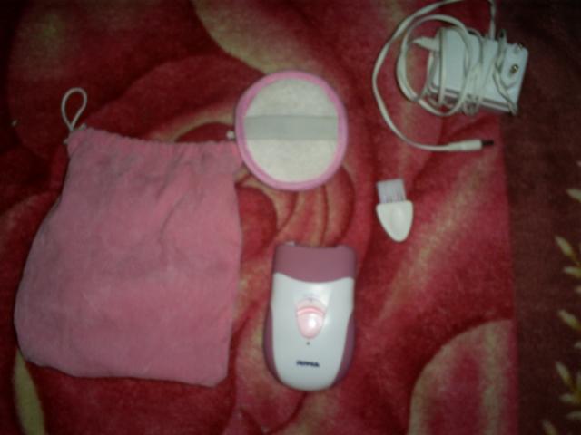 kelis kartus naudotas, bet isdezinfekuotas. rinkinyje yra epiliatorius, ikrovimo laidas, negyvos odos sveitimo kempinele(nenaudota), sepetelis valiti epiliatoriui,maiselis viskam sudeti vezantis i kelione. Galima naudoti pajungta i elektros srove, arba pakrauta. turiu ir dezute