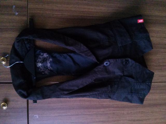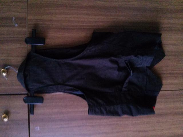 Rudos spalvos su juodais dryžiais liemenė,labai daili,gražiai priglunda prie kūno.