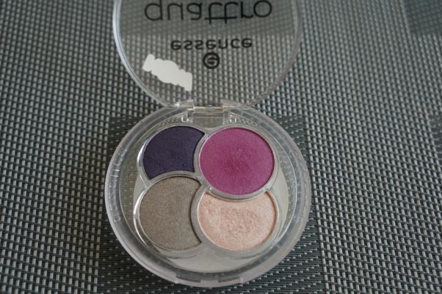 Essence Quattro šešėliai. Puikiai pigmentuoti. Matosi kiek išnaudota.