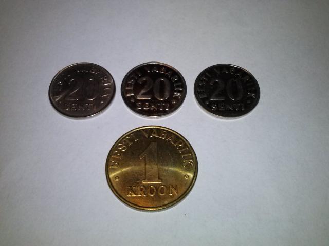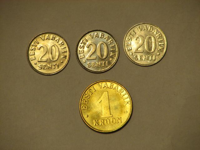 Estijos 1 krona 2006m - 2eur. 20 centų 2006m - 0,5eur. 20 centų 2003m - 0,5eur. 20 centų 1997m - 0,5eur.