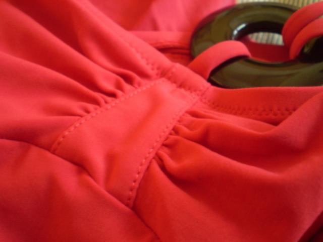 BE defektų, dėvėtas du kart. Labai madingas modelis šiemet. spalva-raudona, neryški(nepavyko išgauti fotoaparatu) Galima nešioti pervėrus per žiedą,arba be petnešos. Žiemą pirkau ETAM, man jis kainavo 70 litų, todėl į bet ką nemainysiu.