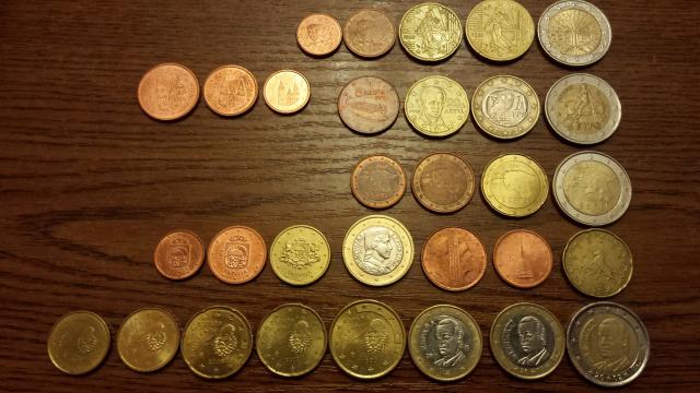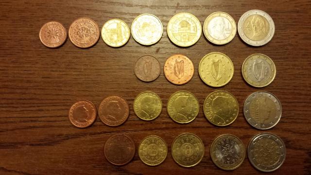 Įvairios euro monetos. Nuotraukose matosi. Kas labiau įdomu - klauskit.