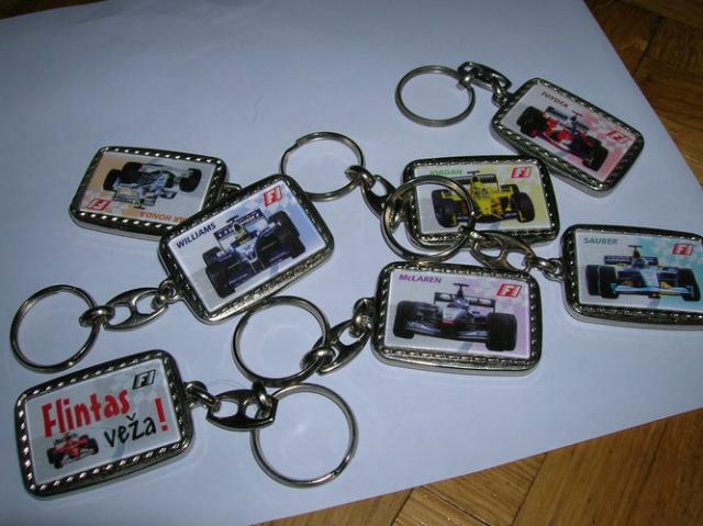 Seniai seniai žurnalo Flintas išleisti F-1 Raktų pakabukai. Vienoje pusėje bolidas, kitoje ferrari bolidas su užrašu "Flintas veža" (Nesunku pakeisti paveiksliuką)