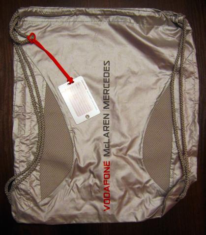 formules 1 atributika, Vodafone mcLaren Mercedes kuprine, krepsys sportui, aprangai ir tt.t. dydis 30cm x 40cm, sidabrine spalva su logotipais, uztraukiamas virvutemis, nenaudotas bet matosi keli nedideli ibrezimai isoreje, bukle tikrai gera, kaina 8 EUR + siuntimas nemokamas