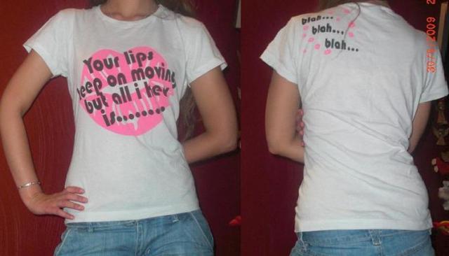 Seip labai faini ir visa kita tik man dideli, priekyje su uzrasu kuris baigiasi nugaroje ;) viskas matosi foto, tikrai faini :) dydis butu drasei M, o gal net ir L ? :)