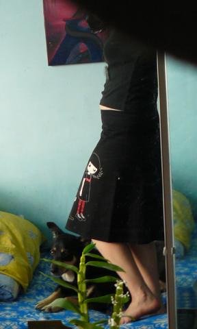 Dydis S/M. Medžiaga panaši į džinsą. Yra užtrauktukų per siūles, galima atsisegt, kad įdomiau būtų. Juosmuo 82cm, klubai 92, ilgis 53cm. Tikrai išskirtinis sijonas