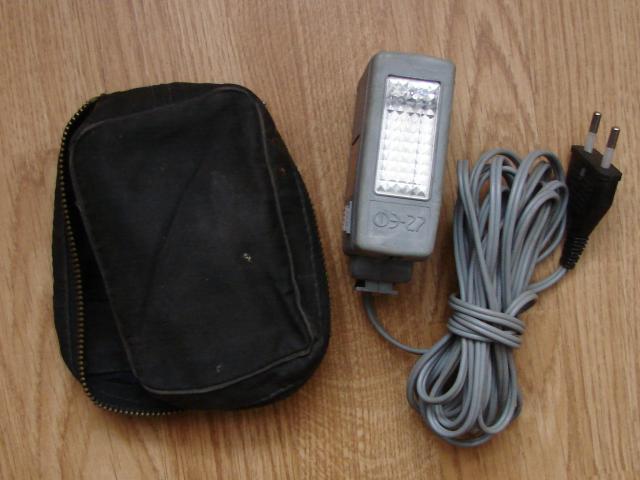 Veikianti tarybinių laikų blykstė su dėkliuku. Kaina su siuntimu.