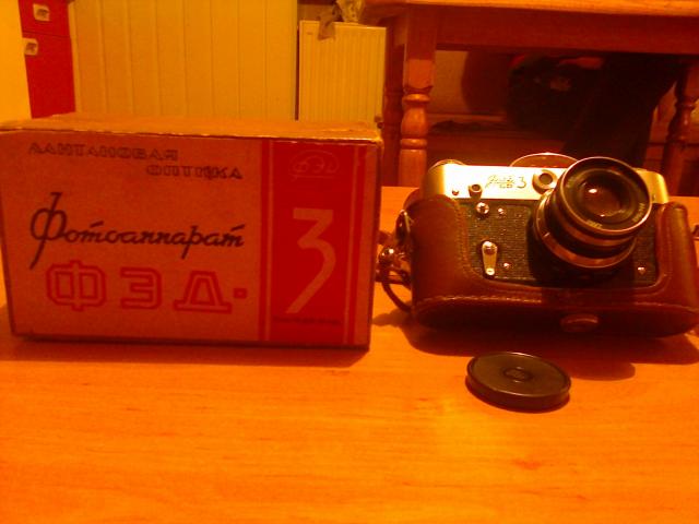 FED 3 foto aparatas su odiniu dėklu ir orginalia dežute.