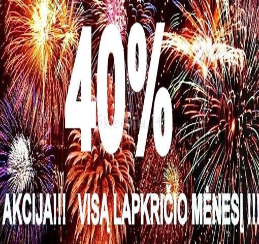 Jau dabar pradėkite ruoštis šventėm!!! Tik dabar, tik Lapkričio mėnesį galite nusipirkti fejerverkus pigiau Net 40 % Internetinė svetainė: Balionunamai.lt Arba mūsų parduotuvėse: -Liepkalnio g. 112, Vilnius Maximos PC -Savanorių pr. 247, Vilnius Maximos PC -Ukmergės g. 23, Panevėžys Maximos PC -Naugarduko g. 64-2, "Balionų namai" (ofisas)