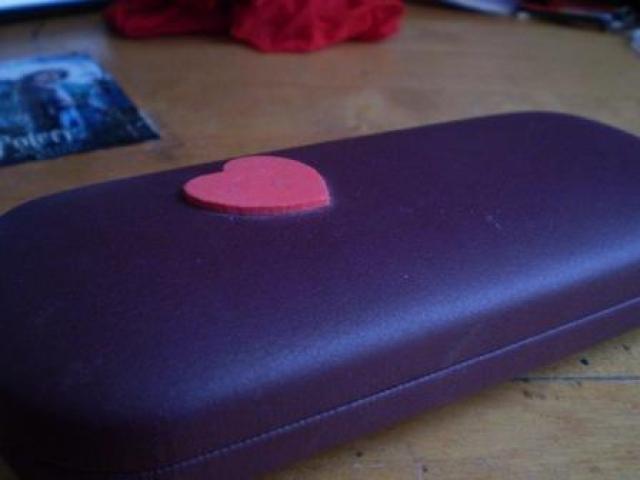 Tamsiai bordinis/rudas akinių dėklas su puikia minkšta širdute : )