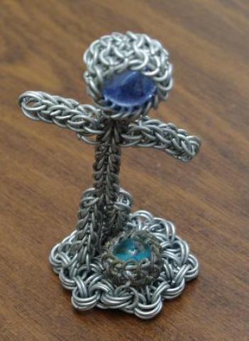 Is metaliniu ziedu padaryta figurele su stikliniais rutuliukais. Nedidele, gali buti pastatoma ant stalo.