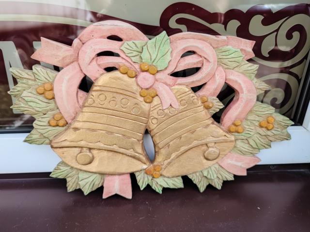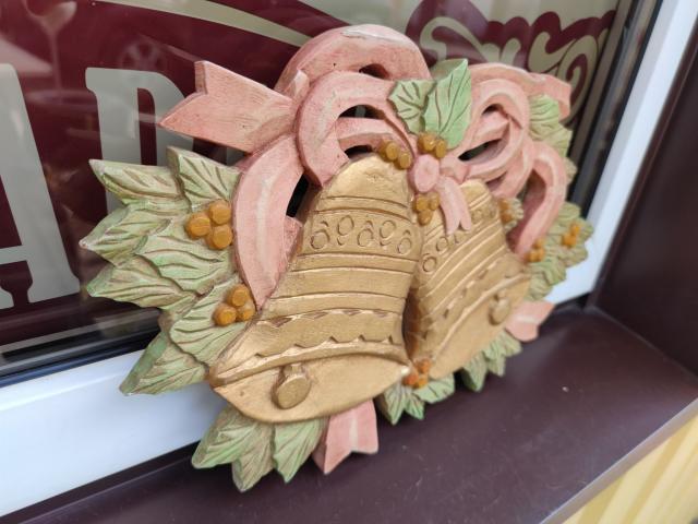 Filipinietiškas pakabinamas medžio drožinys su varpeliais.
