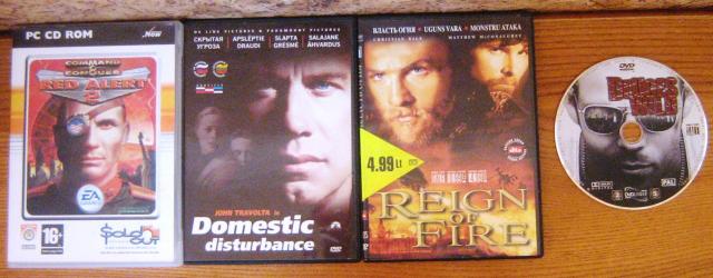 1 - zaidimas 2 - domestic disturbance 3 -reign of fire 4 - filmas visi uz 12 lt. :)