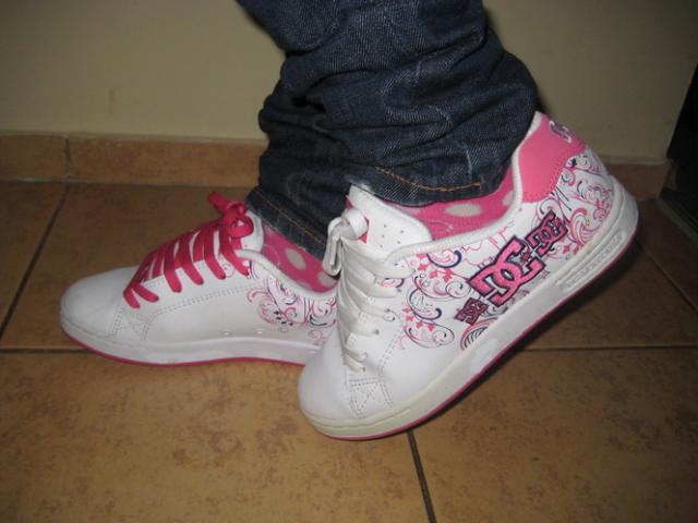 Dydis 37,5, (http://product.dcshoes.com/products/HO09/product.asp?section=womens), pirkti Škotijoje. Gražučiai, žaismingi. Taip pat yra dar antra pora raištukų, galima nešioti baltus, rožinius.