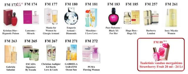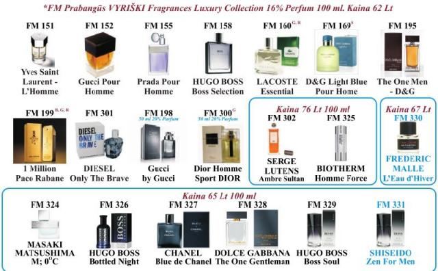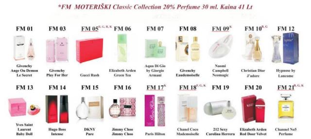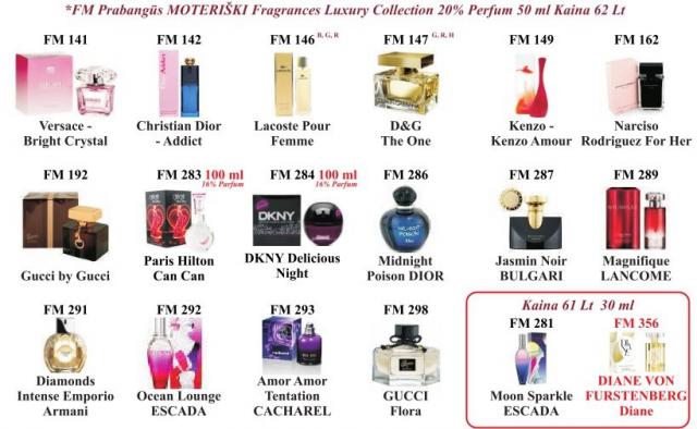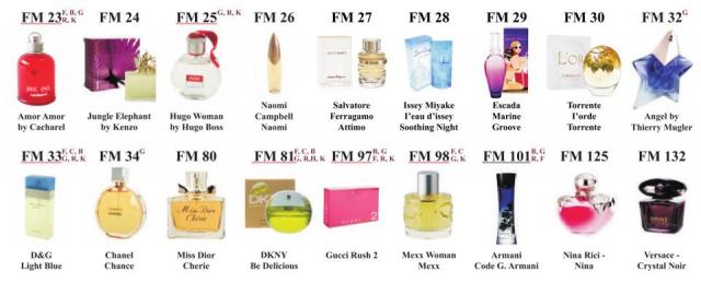 FM GROUP kvepalų BUTELIUKAI skiriasi nuo vardinių, nes vardinių buteliukai ir pavadinimai yra užpatentuoti, o FM GROUP turi savo kvepalus su užkoduotais pavadinimais, tik su tokiu pačiu kvapu bet ne buteliuku! Taip pat jie nėra kopijuojami su iškraipytais pavadinimais, kaip pvz. Versale ir tt, prikabinu nuotrauką kaip atrodo buteliukai. Jie skiriasi pagal pasirinktą kvapą. Tik balandį Akcija visiems kvepalams -20%