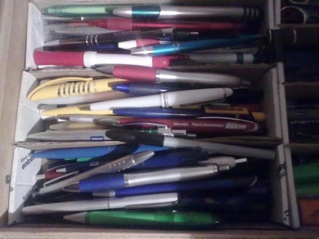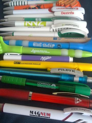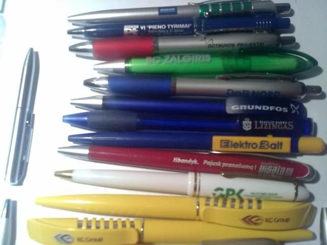 Daug, įvairių firmų, įvairaus dizaino tušinukų. Dauguma nauji, rašantys. Yra daugiau nei nuotraukose.