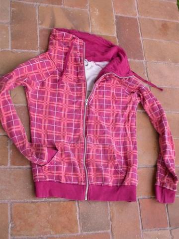Rausvas FISHBONE dzemperis, aukstu kaklu. Atrodo "patrintas", bet toks yra originaliai. :) S dydzio.
