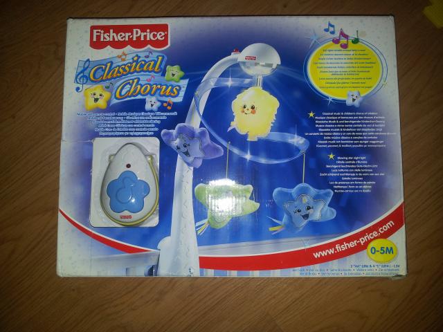 Parduodu Fisher Price muzikinę karuselę. 5 melodijos, reguliuojamas garsas, galima ir visai išjungti garsą, tuomet tik žvaigždutės suksis ratu. Taip pat lemputės šviečia ir ant lubų. Tiek vieną tiek kitą švieselę galima išjungti. Yra nuotolinio valdymo pultelis.