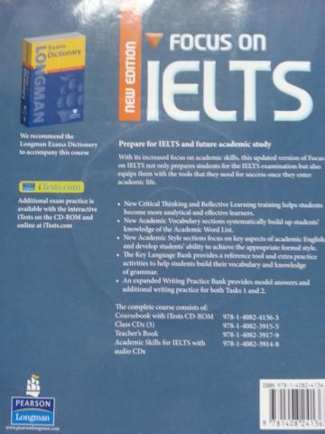 Focus on IELTS Coursebook/iTest CD-Rom Pack. Paruošiamasis IELTS (Tarptautinio Anglu kalbos Egzamino) kursų vadovėlis su mokomuoju disku. Daug naudingos informacijos, pavyzdziu ir uzduociu ruosiantis anglu kalbos tarptautiniam egzaminui.
