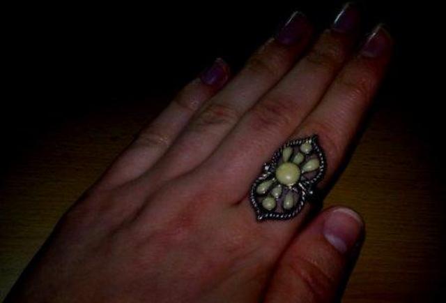 Žiedas su fosforo elementais. Šviečia tamsoje.