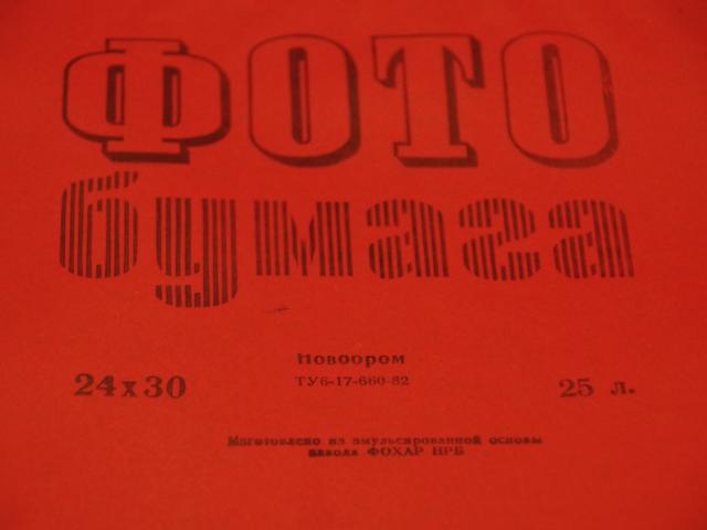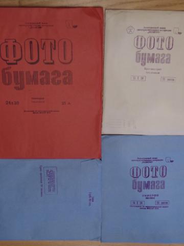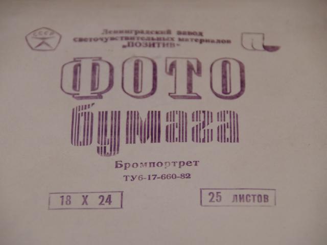 Juodai baltas foto popierius. 18x24 Unibrom 25 lapai pagaminta 1990-12 viso yra 4 pakuotes; 8€ vnt. 18x24 Bromportret 25 lapai pagaminta 1990-10 yra 1 pakuote; 8€ vnt. 24x30 Novobrom pagaminta 1990-12 liko 1 pakuotes; 12€ vnt. Pakuotes nepazeistos, saugota sausoje ir tamsioje vietoje, galiojimo laikas be abejo pasibaiges.