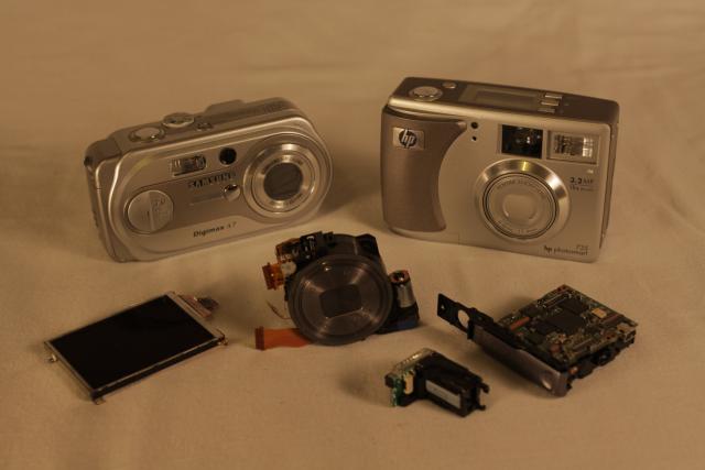 Vienas fotikas rodo gyvybes zenklus, bet neisijungia, kitas nerodo nieko :) ekraniukas geras, objektyvo vienas sleifas plyses (nuo kazkurio canon IXUS)