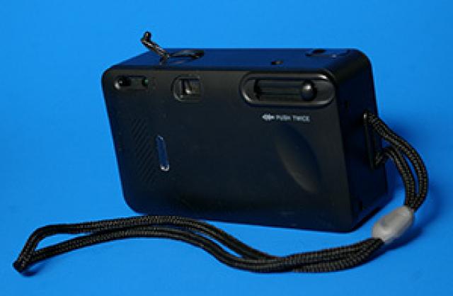 keistas fotikas, juostinis, dedasi 2AA elementai, užtaisymas rankinis, juosteles suvyniojimas taip pat.rankinis..