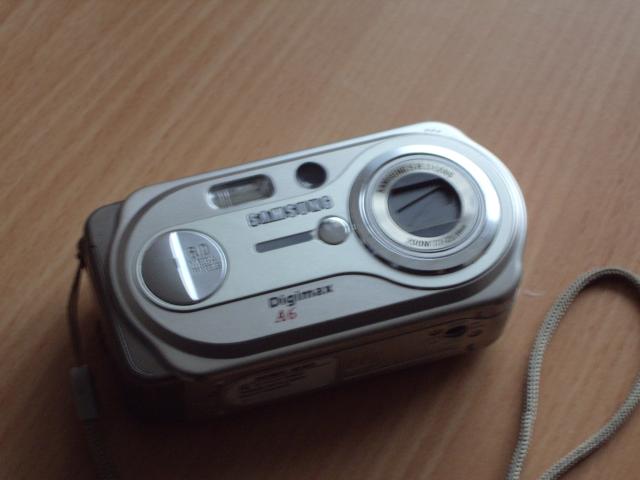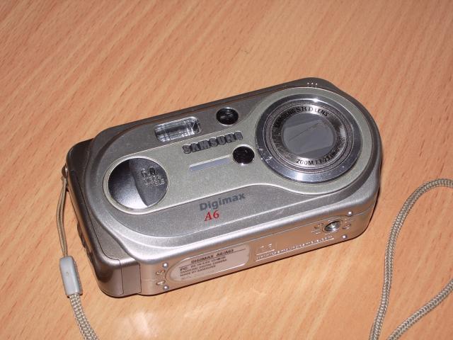 Pilnai veikiantis aparatas Samsung Digimax A6 , maitinamas 2 AA baterijom, korpusas normalus, visi blicai fokusai pyškina kaip priklauso. Nėra toks greitas kaip šiuolaikiniai, bet užtat ilgaamžis :) Su dideliu dėklu.