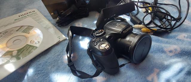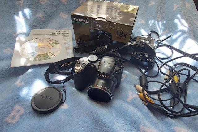 Parduodamas prižiūrėtas ir mylėtas fotoaparatas FUJIFILM FINEPIX S1800,yra originali dėžutė su naudojimosi disku, reikalingi laidai-į mašiną, į kompiuterį, į tv ir pakrovėjas.Dedasi AA pakraunamos baterijos (reikėtų nusipirkti naujas AA baterijas, nes per nuo ilgo nenaudojimo senos gali nelaikyti ilgai fotografuojant), yra galimybė įsidėti norimo dydžio atminties kortelę.