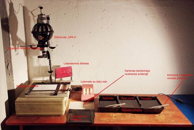 pilnai paruosta laboratorija. yra didintuvas su lagaminu, voneles, voliukai, (ryskalai, fiksazas, popierius nupirkta nauja ir neispakuota.) zodziu viskas ko reikia. Randasi Klaipedoje, yra galimybe atvezti i kauna
