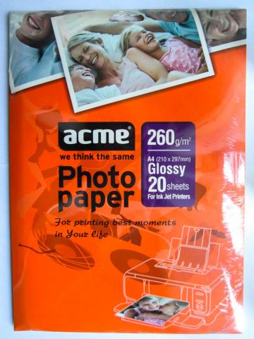Acme fotopopierius A4 (210x297mm), 20 lapų, blizgus (glossy). Nenaudotas. Pakuotė nepažeista.