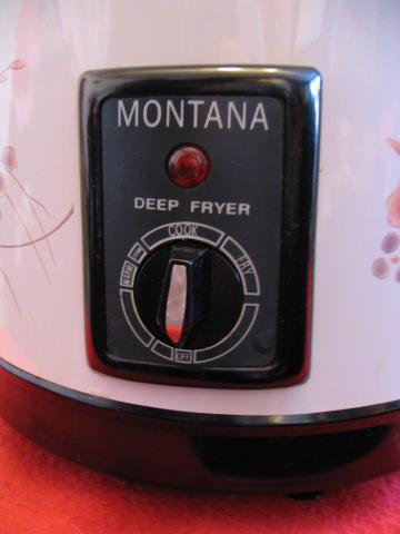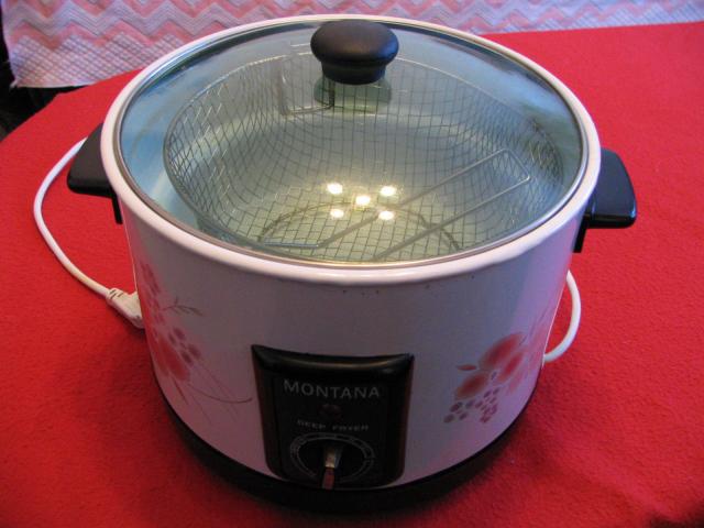 Fritiurine Montana (talpa 5 litrai, yra keli gaminimo rezimai, ir raso kad ju temperatura nuo 90 iki 190.), yra labai mažai naudota, atrodo labai gerai. galima naudoti kaip ir elektrini puodą virimui. (naudojau gal 3 kartus, po to gavau dovanu kita fritiurine ir apie šitos egzistavimą pamiršau)