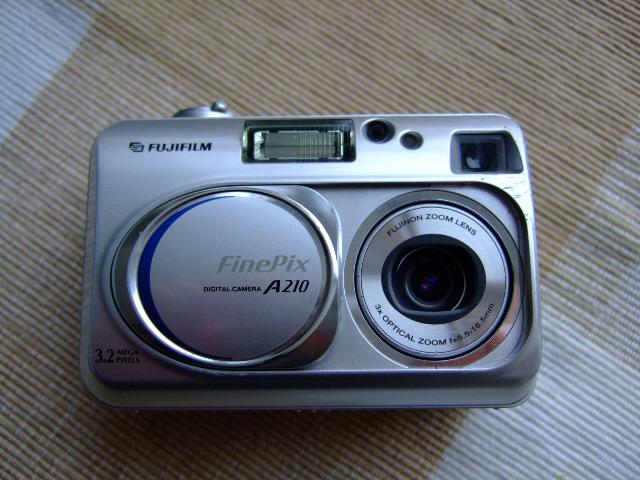 FujiFilm FinePix A210 fotoaparatas su originaliu dėklu. 3,2Mpx, 3x optinis, veikia nuo AA akumuliatorių.