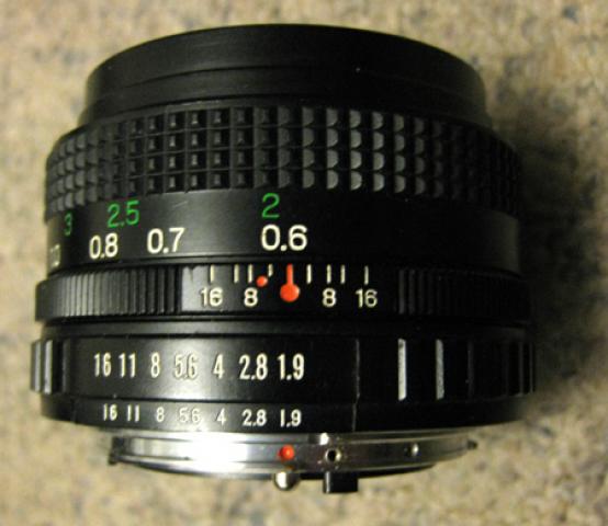 Objektyvas "Fujica" fotoaparatui. 50 mm, 1:1,9. Viskas veikia. Nėra tik dangtelio ir priekinės plastmasės (foto įtakos neturi). Stiklai švarus