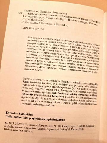 1999m. E.Satkevičius, tekstas rusų kalba, lentelės keliomis kalbomis,tame tarpe ir lietuvių