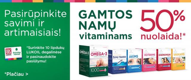 Gamtos namu vitaminai 50% nuolaida. 10 lipduku 5lt , 30 lipduku 9lt. Placiau: http://www.lukoil.lt/lt/apie_bendrove/naujienos?Events_page_nr=0&Events_item_id=139&print