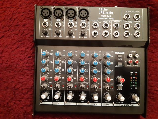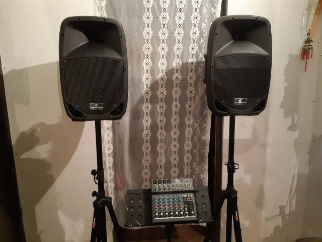Parduodamas beveik naujas garso aparatūros komplektas už 475 EUR. Aparatūra veikia nepriekaištingai ir defektų neturi. Į komplektą įeina: 1. Dvi aktyvios garso kolonėlės Go-Sound 12A po 880W po 180 EUR (viso 360 EUR) 2. Du stovai kolonėlėms STAND4me po 22 EUR (viso 44 EUR) 3. Mikšerinis pultas t.mix 802 už 55 EUR 4. Du 9 m ilgio jungiamieji laidai po 8 EUR (viso 16 EUR) Dėl papildomos informacijos skambinkite arba rašykite P.M. Vilnius, Tel.: 8 618 30733