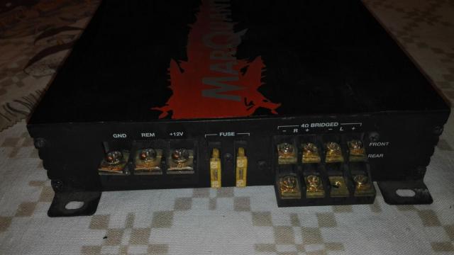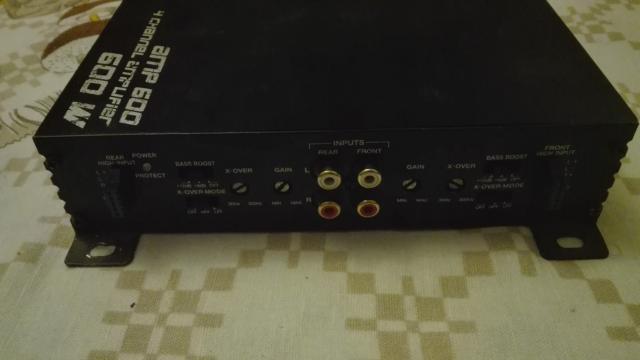 Automobilinis garso stiprintuvas Marquant AMP600. 4 kanalų 600w Techniniai duomenys: RMS Power: IHF 600 Watt Front/Rear THD at 4 Ohm 4 x 100 Watt Front/Rear THD at 2 Ohm 4 x 150 Watt Front/Rear THD mono at 4 Ohm 2 x 300 Watt High-Pass and Low Pass, Front and Rear (30-600) Hz Bass boost 0-6-12 dB at 45 Hz Bridgeable SNR 90 dB 2 ohm stability Weight 2.2 Kg Size 345(d) x 197(l) x 49(h) mm Kartais isijungia, kartais ne