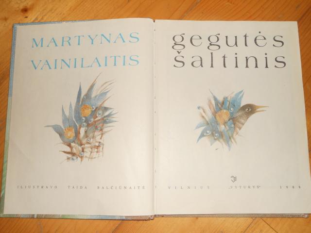 Gegutes saltinis, m. vainilaitis, iliustravo t. balciunaite, 1988, virselio kampas paplyses (matosi nuotraukoje), yra uzrasas rasiklu.