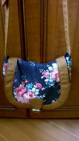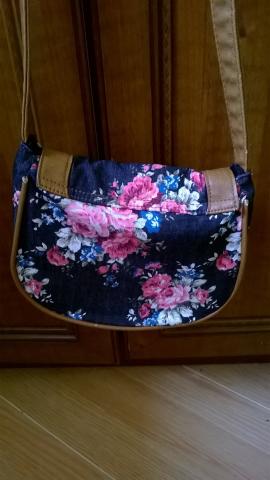 Miela, jaunatviška, gėlėta rankinė per petį. Yra labai maži defektukai (pabraižymai). Išmatavimai: Plotis 23cm, Ilgis 17cm.