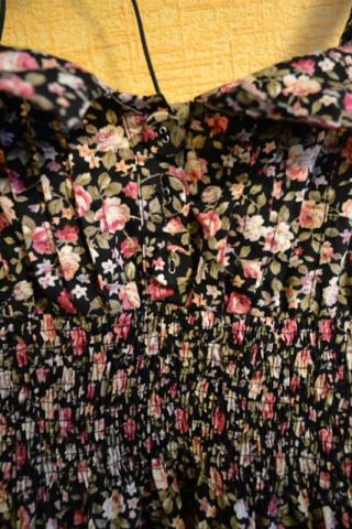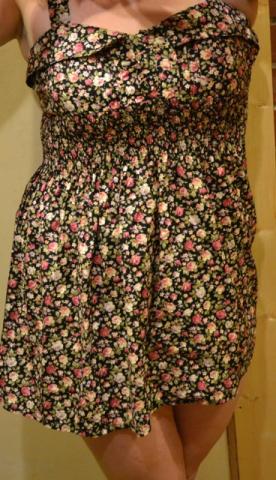 Dydį rašo 14 bet nežinia ką čia reiškia, nes realus dydis M-L, žiauriai graži gėlėta, ties liemeniu medžiaga sutraukta tad tiks M tai tikrai, petnešėlės susimažina jas persegant, na tobula vasarai :)) Nauja