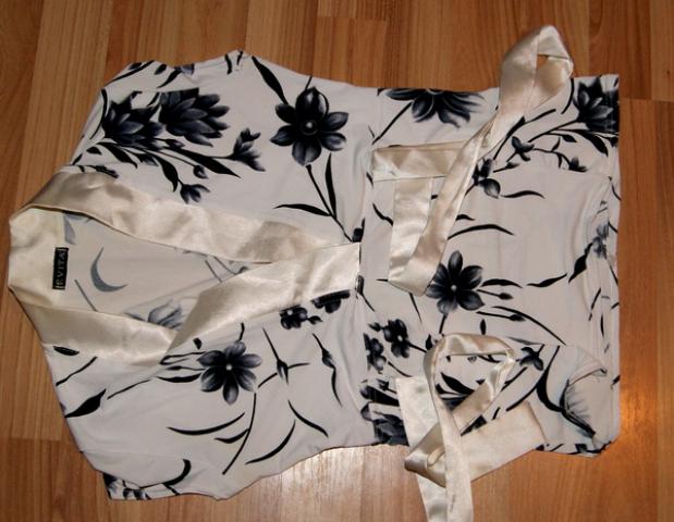 tikrai isskirtine, siline palaidine, primena kinisko stiliaus drabuzi :) yra priekyje trputi issikesiojusiu siuleliu, bet nelabai jie matosi, bet atiduodu labai pigiai :) tikrai grazi ir nepaprasta palaidine :)