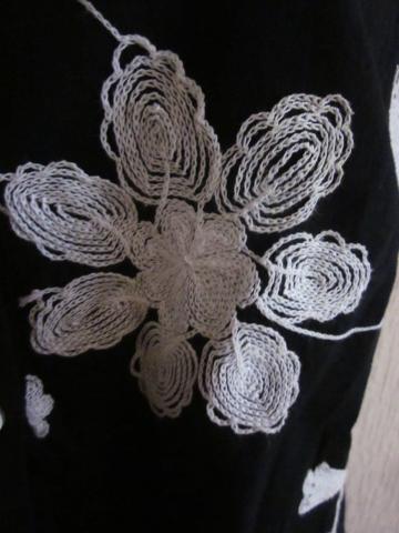 Juodas kostiumėlis, siuvinėtas baltomis gėlėmis. Dydis 44, palaidinė 85E/F krūtinei tinkama. Defektų nėra. Palaidinės ilgis 59 cm, krūtinės apimtis 54x2 cm, sijono ilgis 74 cm, juosmens apimtis 46x2 cm, klubų apimtis 54x2 cm. Registruotas siuntimas +1.50€, siunta keliauja 2-3 darbo dienas. Kaune galima pasiimti nurodytoje vietoje.