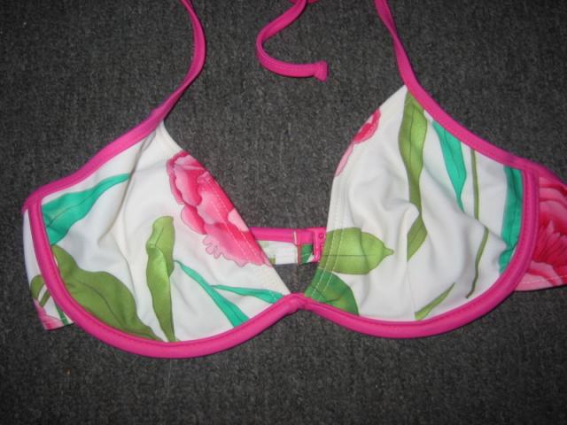 Kostiumėlis kaip naujas. Jokių defektų. Nugaroje užsisega sagtele ir susiriša už kaklo. Kelnaičių dydis 10, liemenėlės-32, euro 70, cup A/B Prekinis ženklas: Jeff Banks London Sudėtis:83proc. nylon, 17proc. elastane